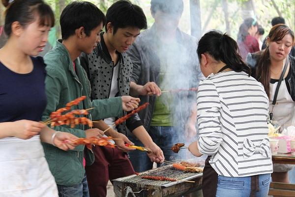 在烧烤过程中,生火、刷油、翻转、洒孜然粉、辣椒粉等,整个过程让大家着实感受了一把“自己动手丰衣足食”的乐趣。期间大家还不忘及时总结经验,互相交流心得,场面热闹非凡。